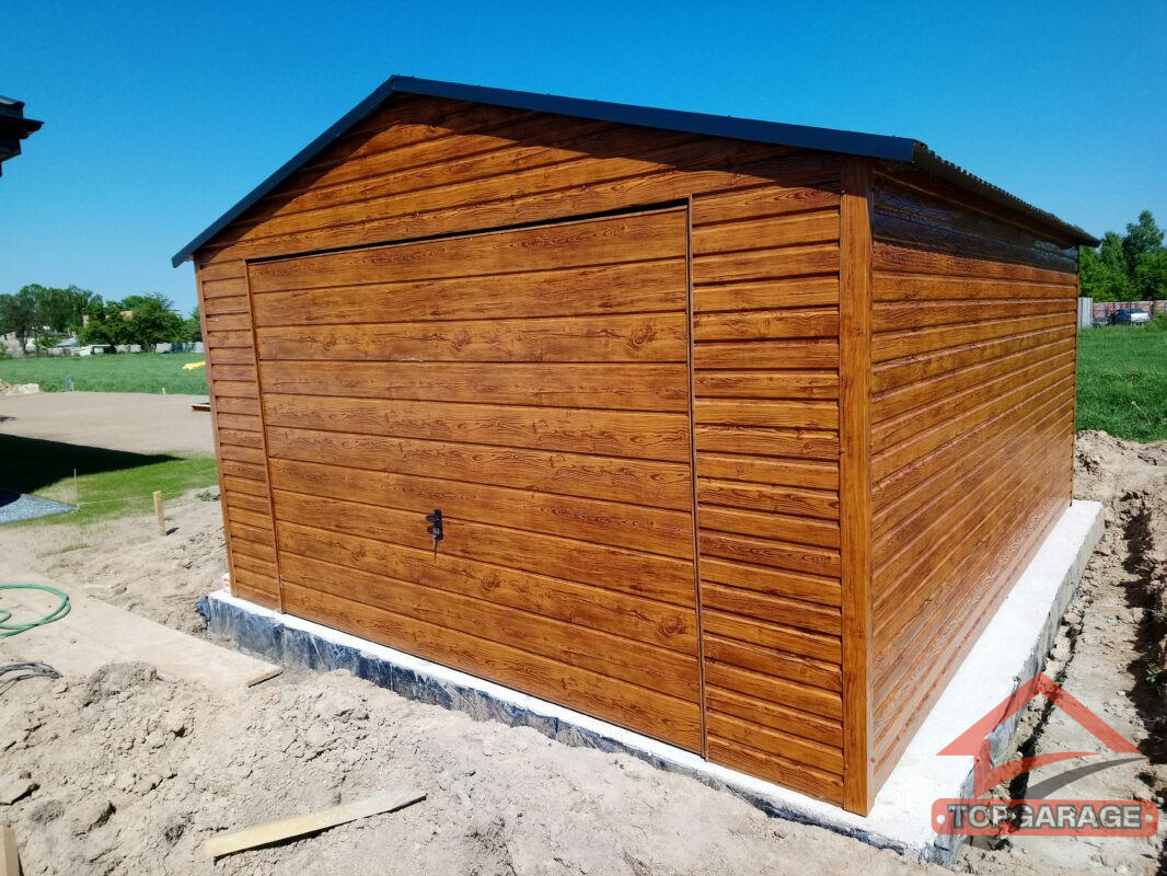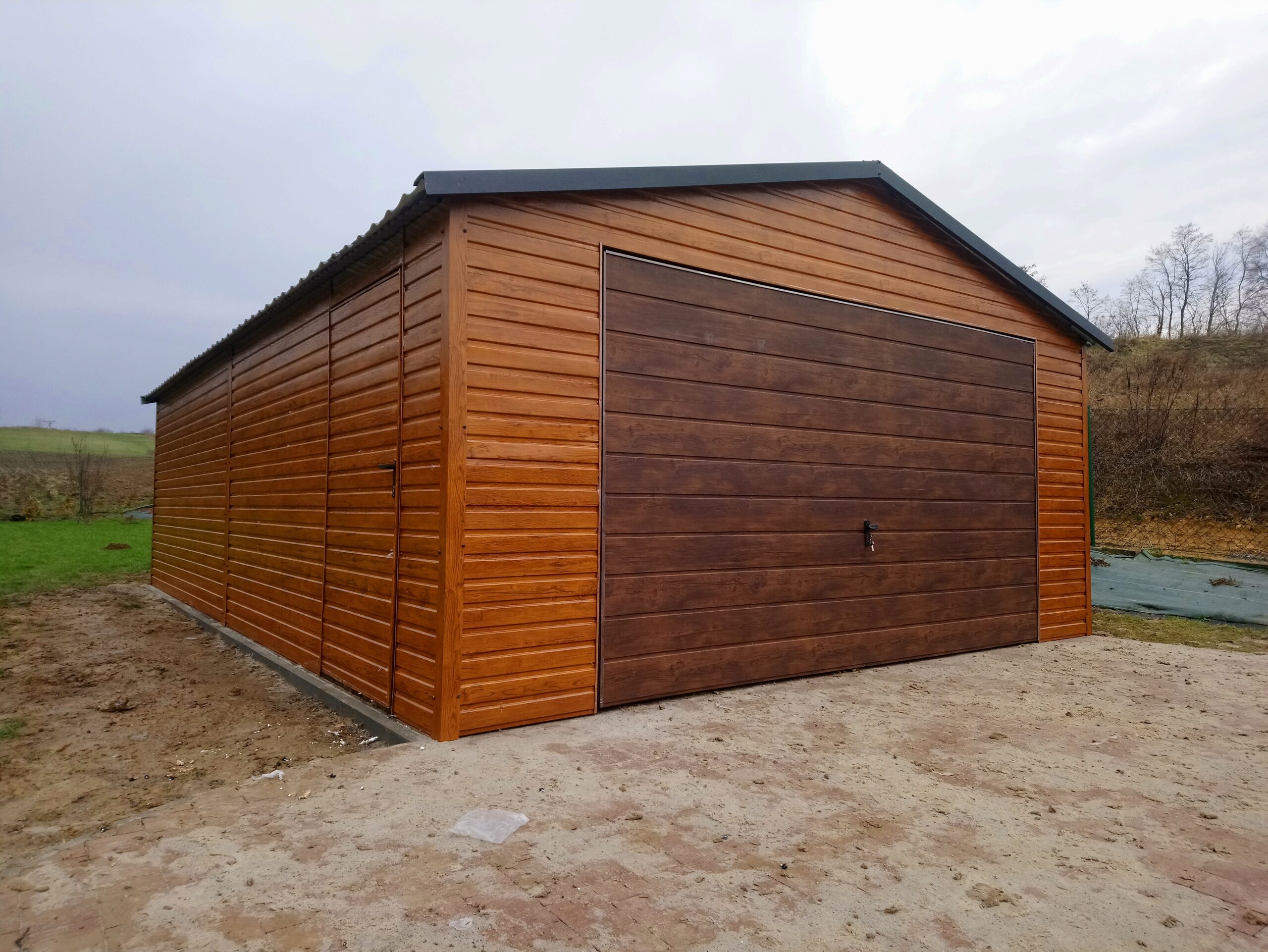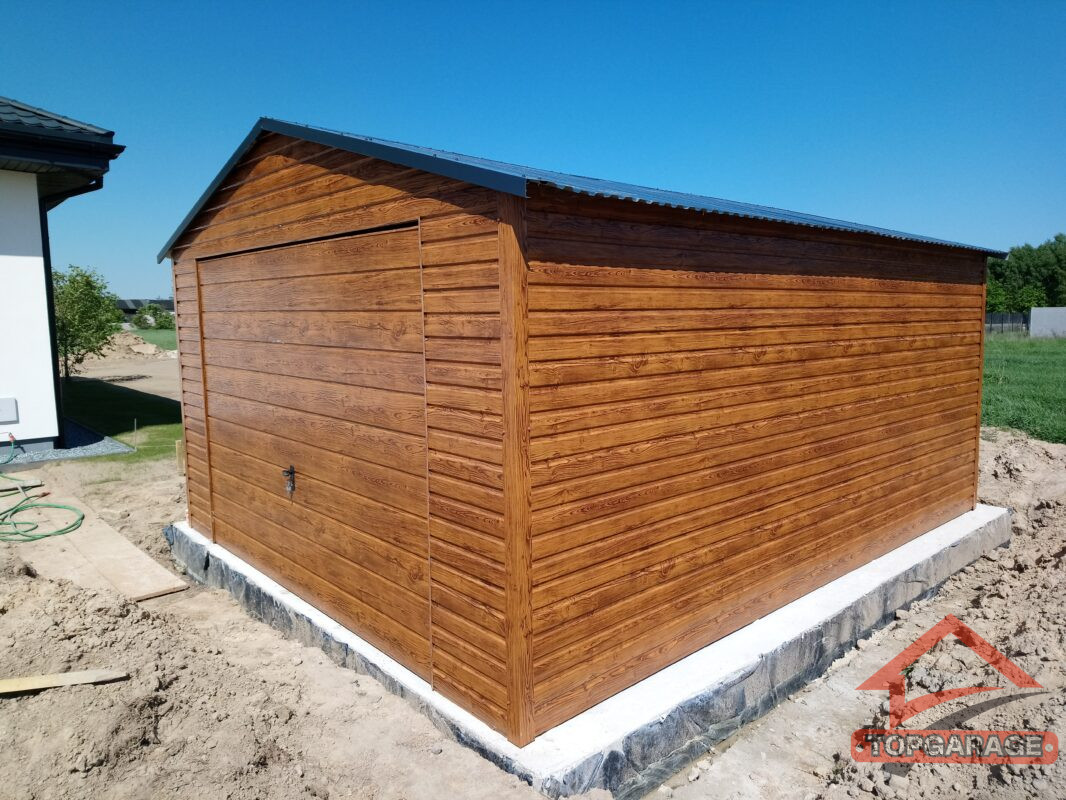 Garaż blaszany 4m x 6m | 1x brama uchylna Drewnopodobny