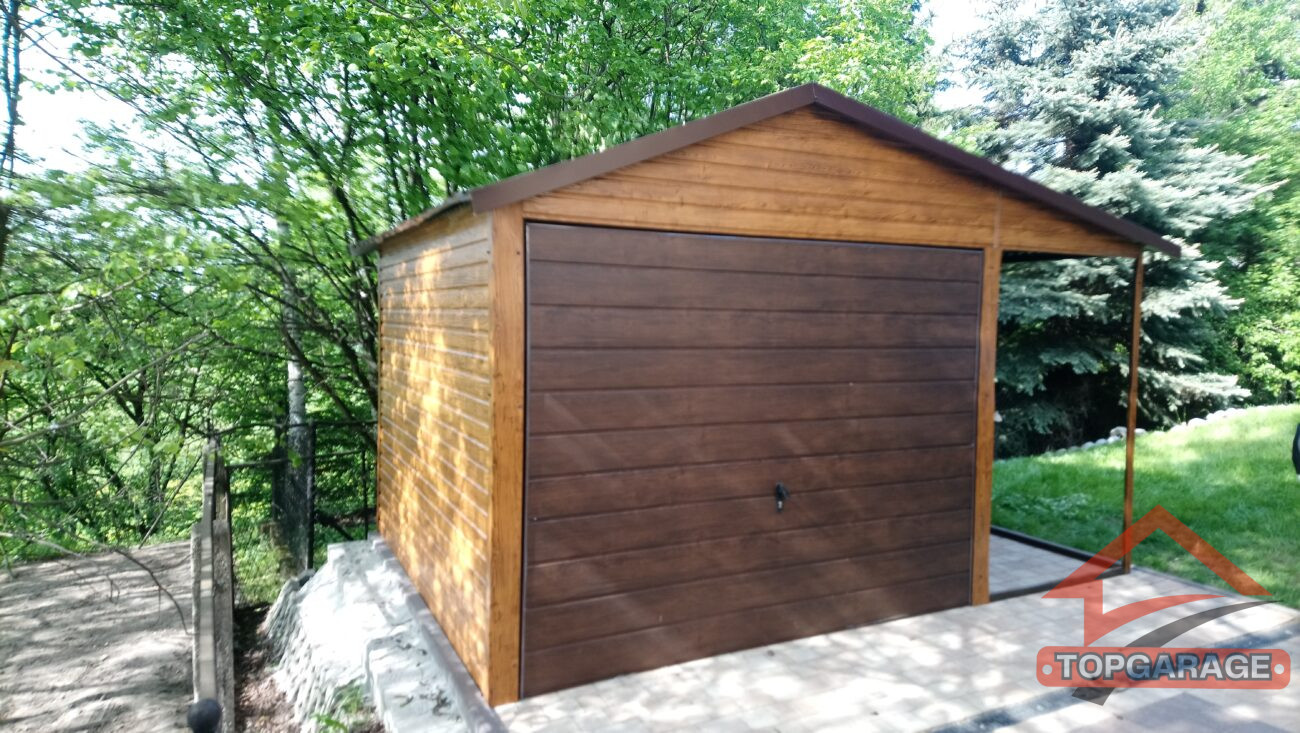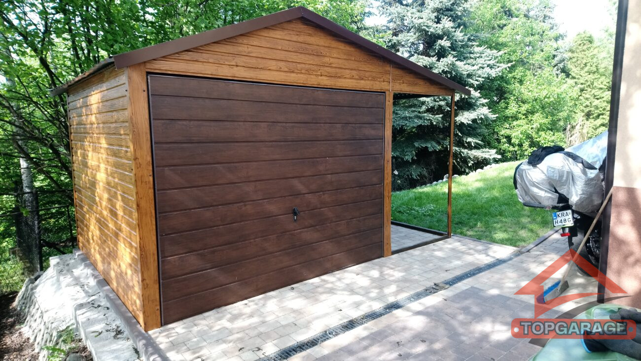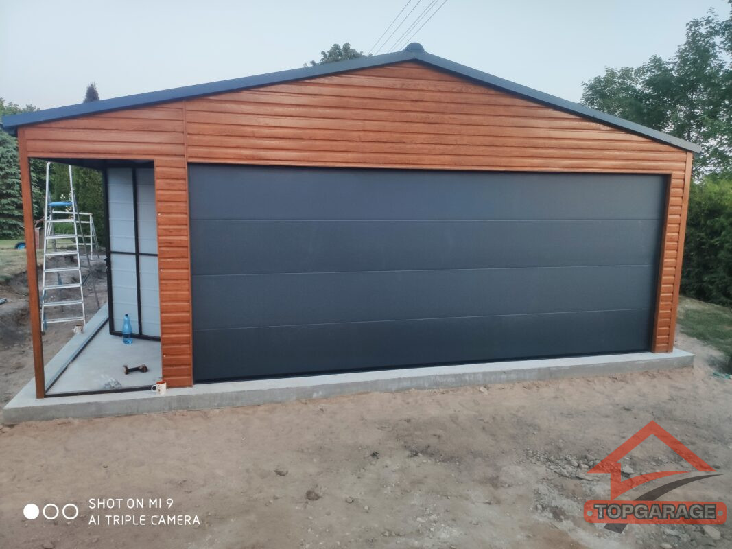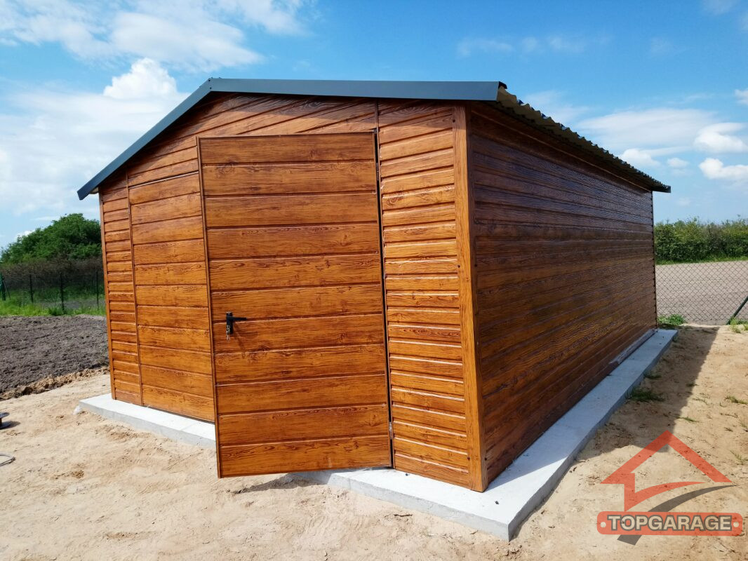 Garaż blaszany 4m x 6m | 1x brama uchylna Drewnopodobny