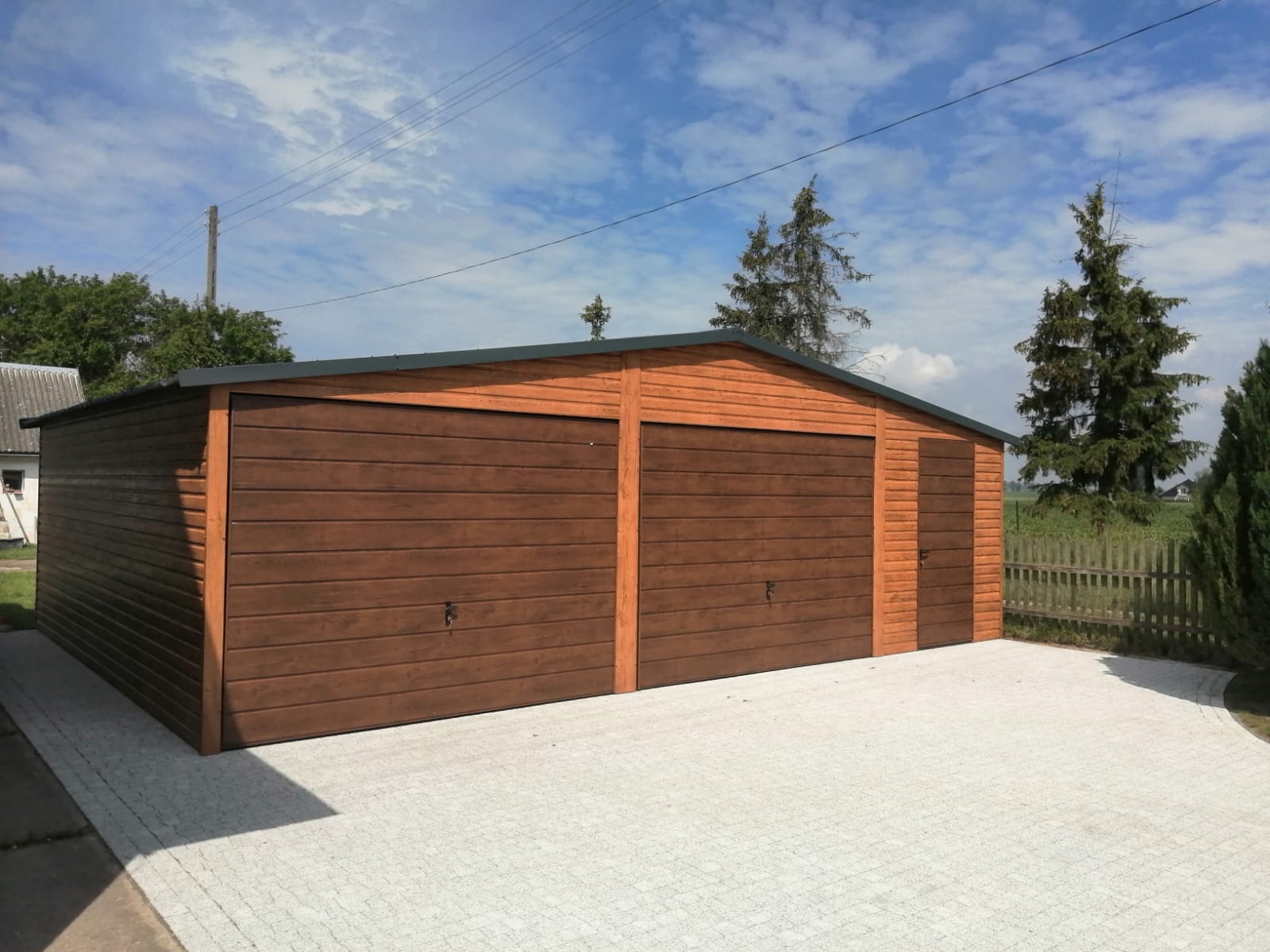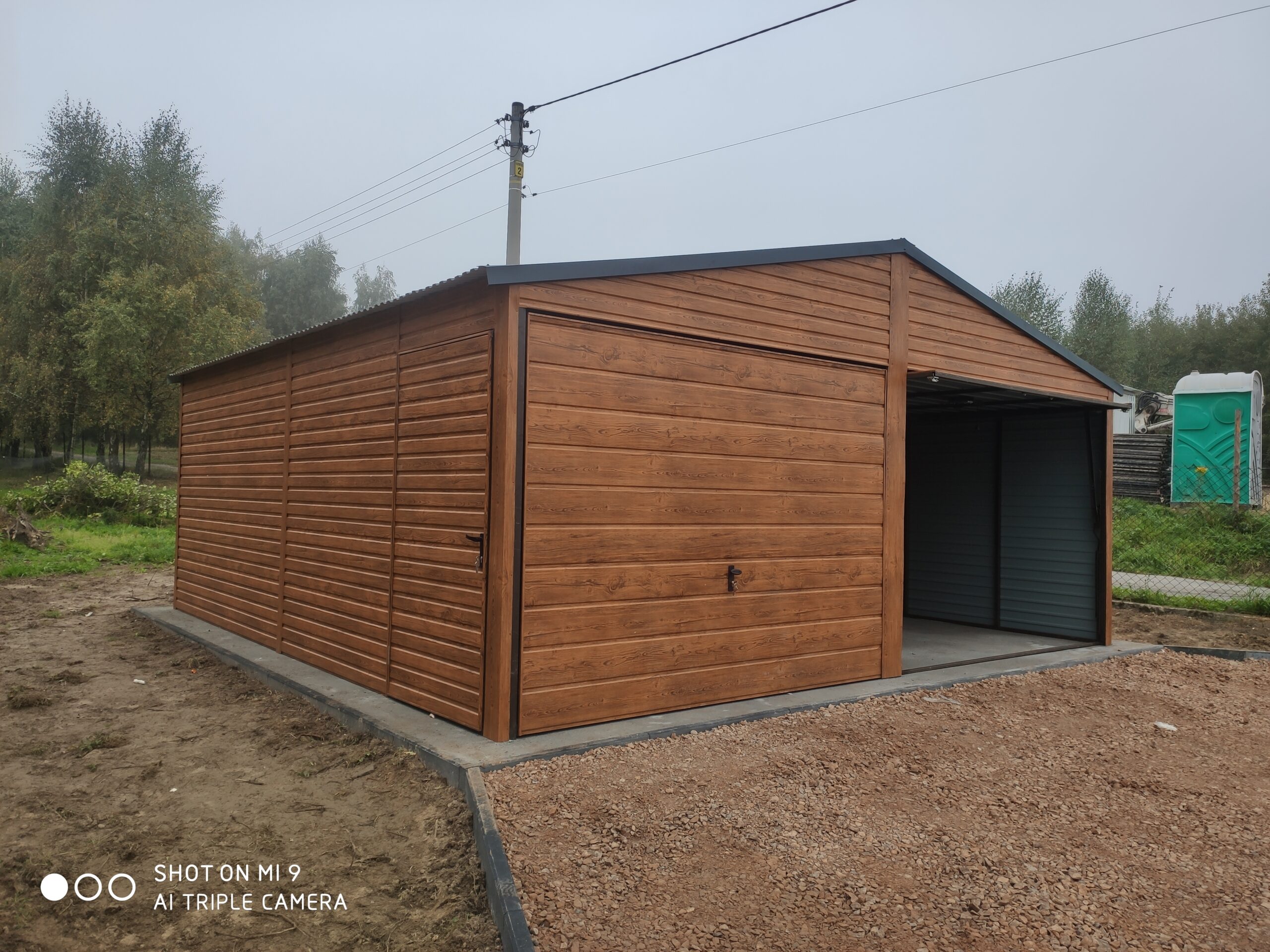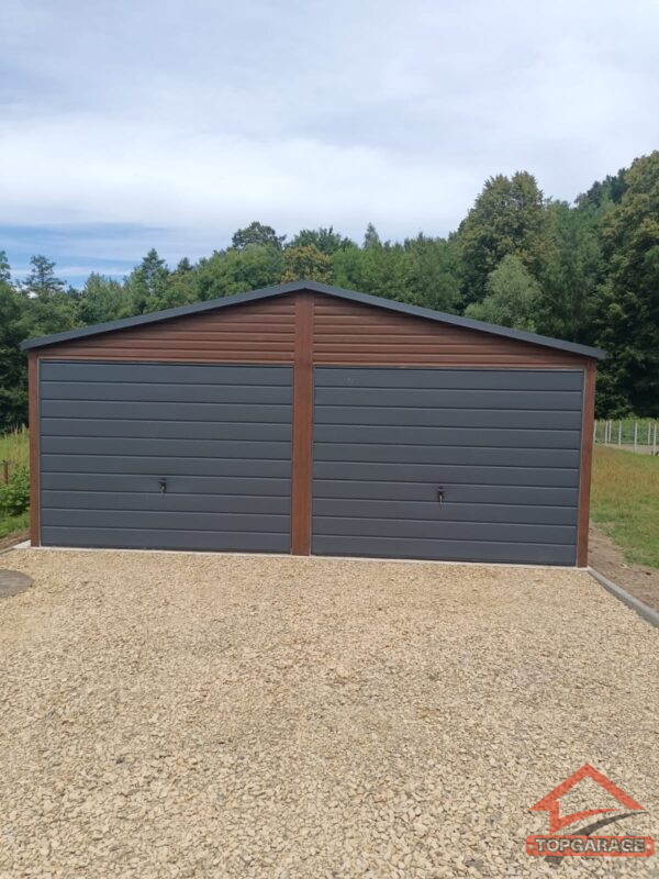 Garaż blaszany 6m x 6m | 2x brama uchylna Drewnopodobny