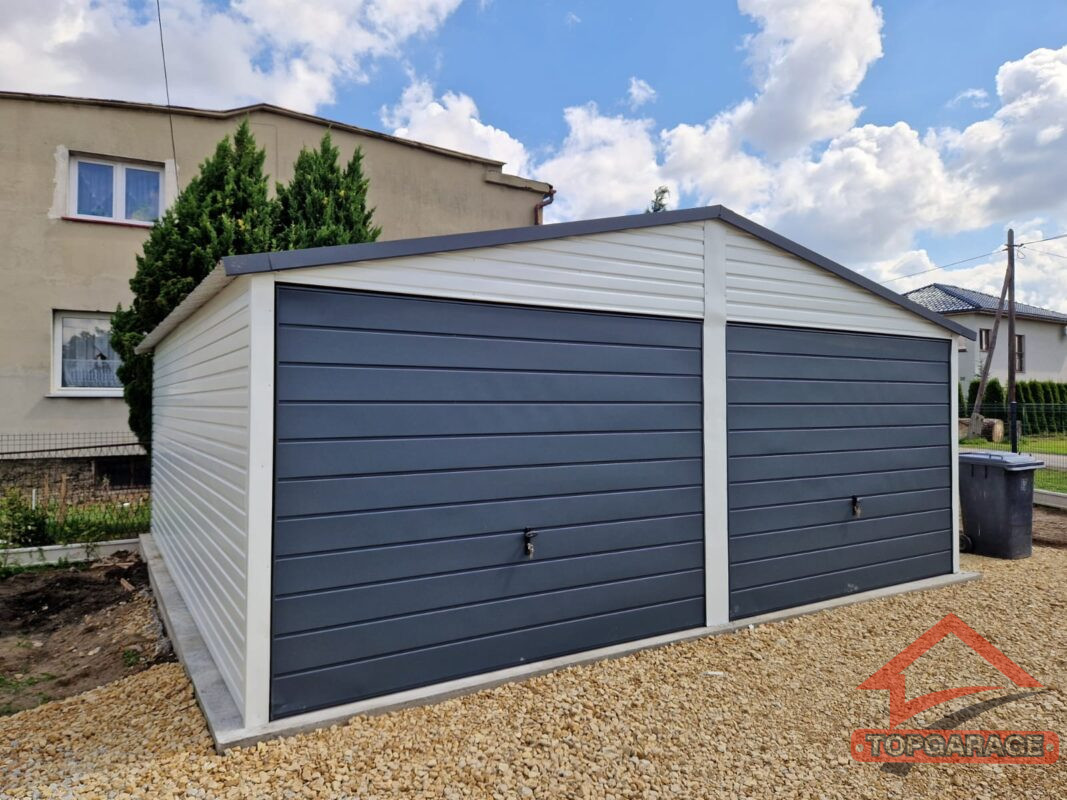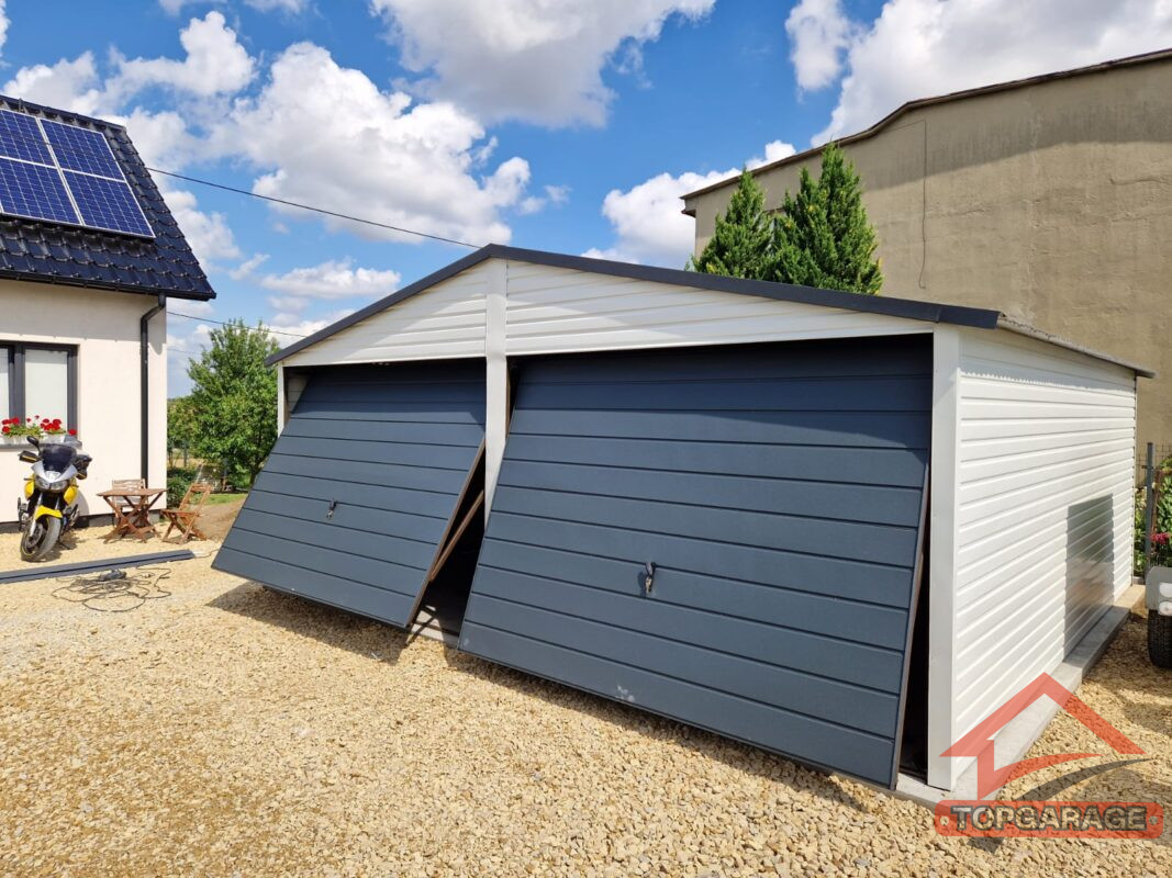 Garaż blaszany 6m x 6m | 2x brama uchylna