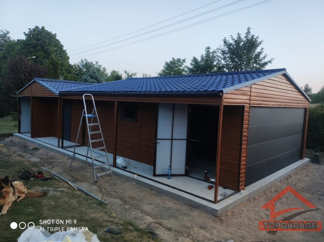 Garaż blaszany 5,5m x 8m + wiatka 1,5m | brama segmentowa