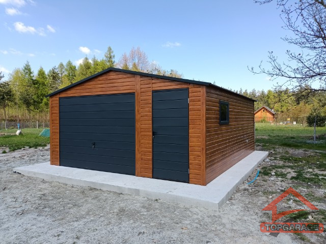 Garaż blaszany 4m x 5m | 1x brama dwuskrzydłowa Drewnopodobny